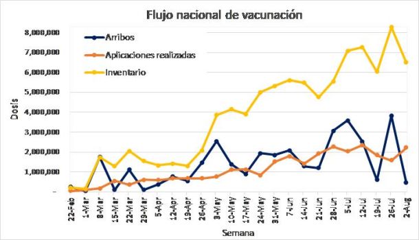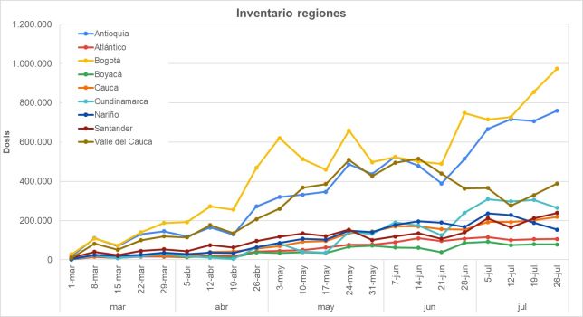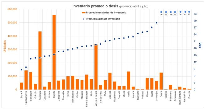Aunque hay limitación general en el suministro al país y más allá de algunas demoras iniciales en la asignación y distribución, desafortunadamente los diferentes territorios, no han respondido con la velocidad requerida de vacunación, según a la tasa de llegada; las dosis se han venido acumulando, convirtiendo el proceso de vacunación, en el cuello de botella general del sistema.
