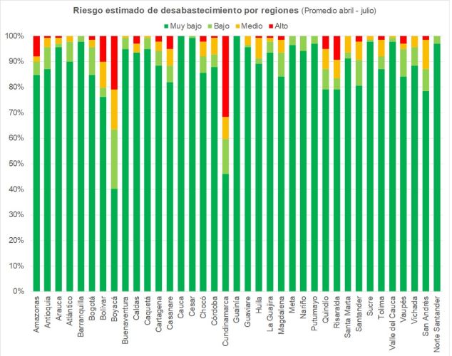 Gráfica 7: Riesgo estimado de desabastecimiento por región - Fuente MSPS - COLEV - Cálculos DL.