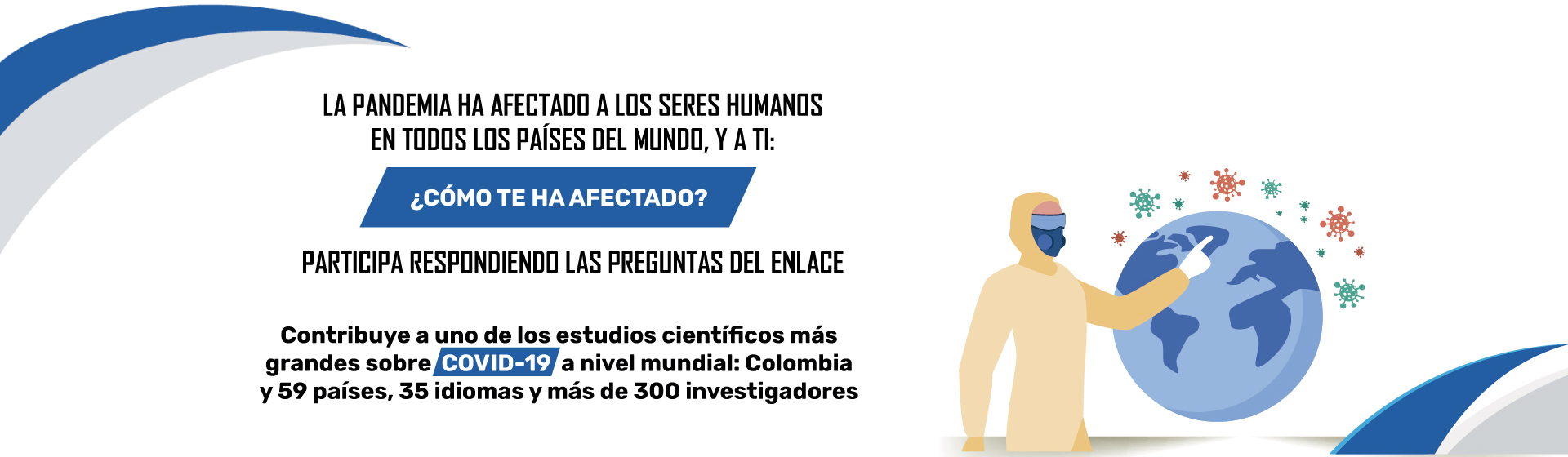 Participe en este estudio colaborativo internacional. Somos 130 investigadores en todo el mundo que intentamos comprender las experiencias de las personas y cómo se han enfrentado durante la pandemia de COVID-19.